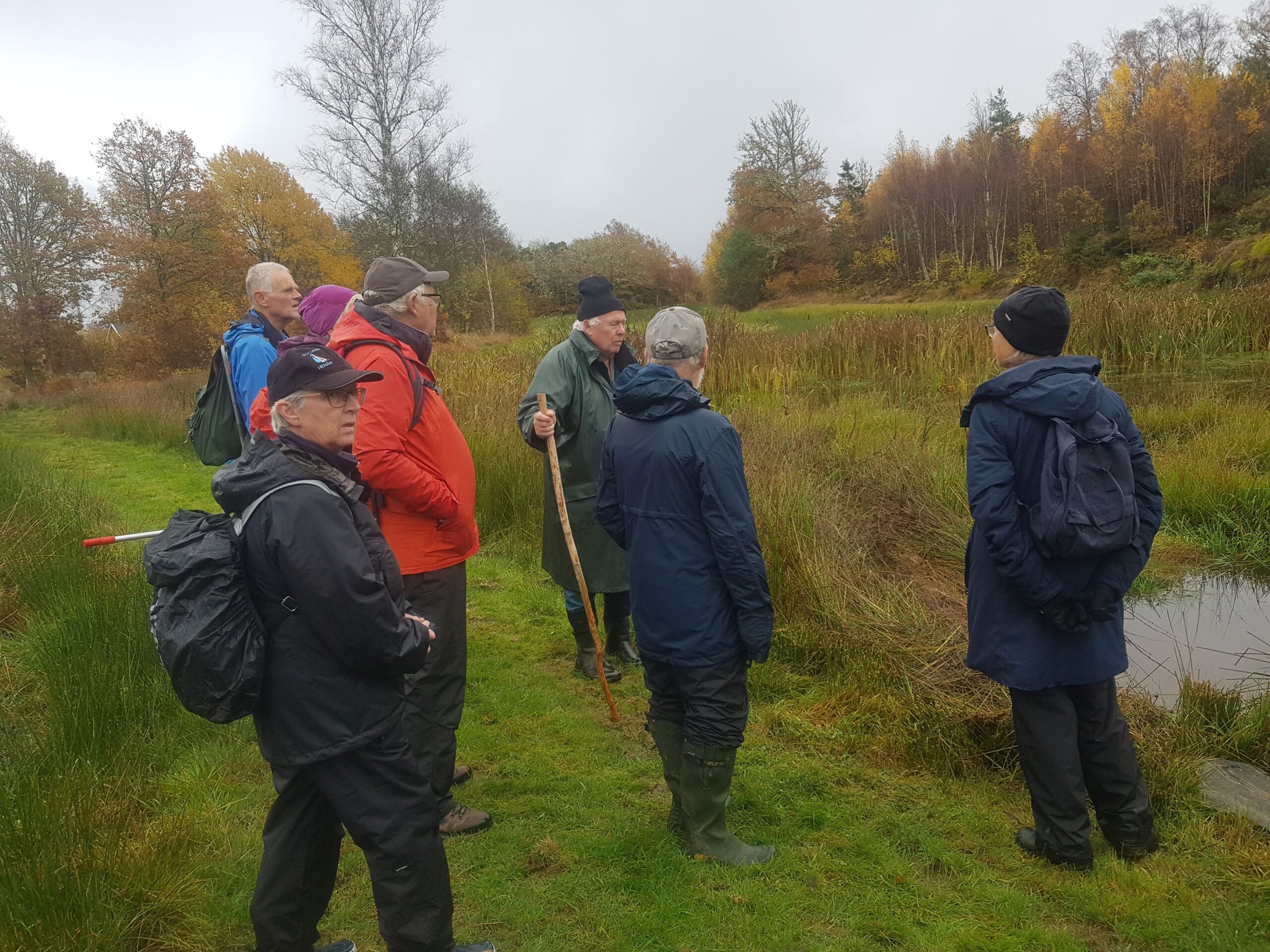 Besöket inleddes med en genomgång av Andreas i Tegneby församlingshem och därefter besöktes först Torsby och sedan Björneröd där det avlutades med korvgrillning. På fotot står deltagarna vid en av dammarna i Torsby.