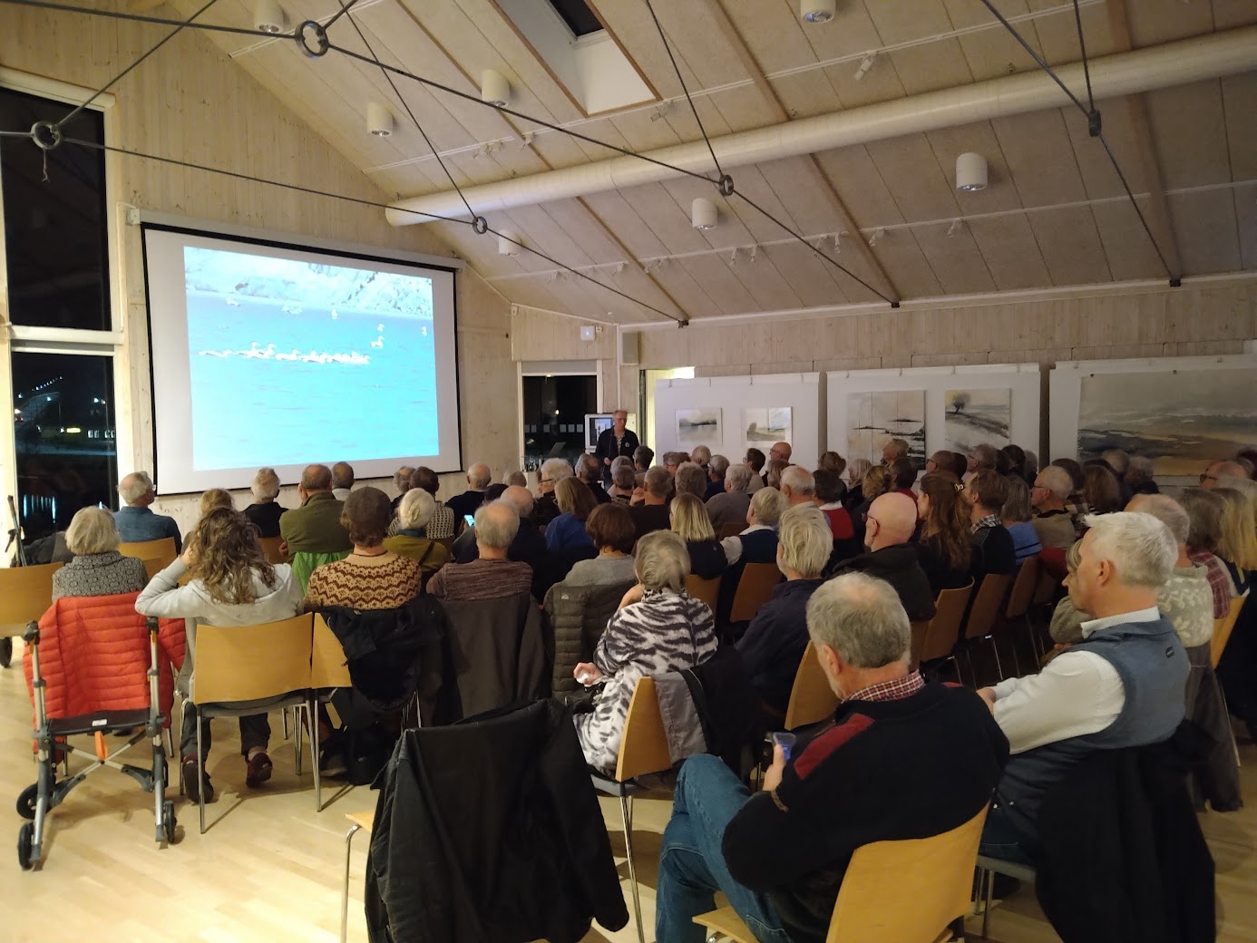 Detta var en föreläsning som lockade många intresserade till Kajutan i Henån den 3 oktober. Det är alltid svårt att beräkna hur många som kommer. Trots ett visst beräknat överskott av kaffebröd till fikapausen, gjorde de 55 tillströmmande att vi snabbt fick kila till affären och inhandla mer.